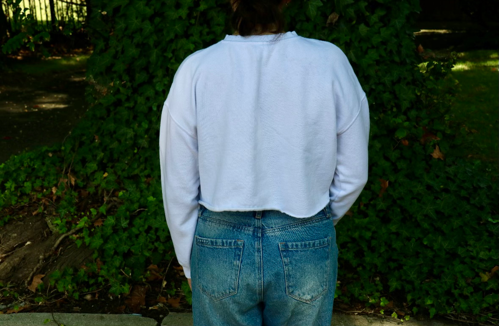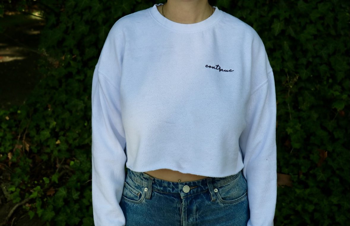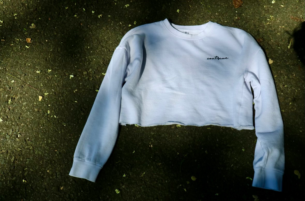 By wearing this cropped crew, you stand with a sister moving through unimaginable grief, helping attain her goals of providing healing to others, while also raising awareness for mental health and suicide prevention.