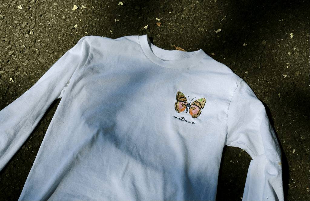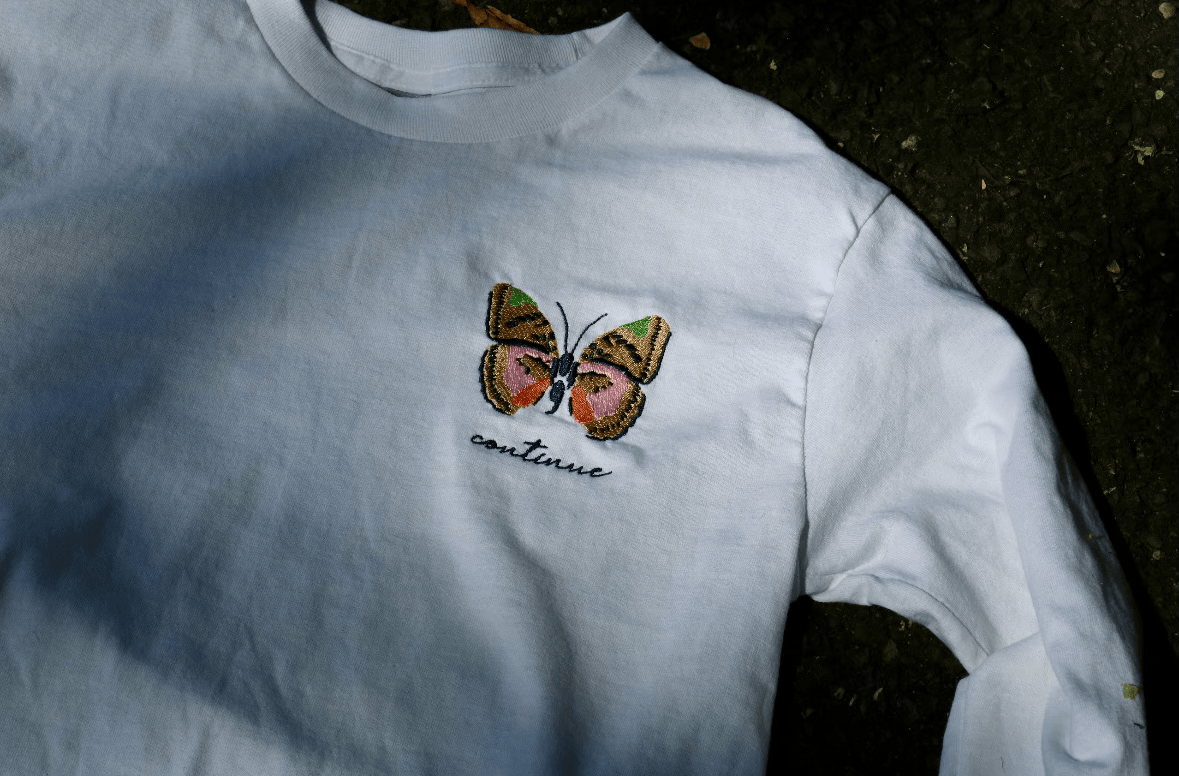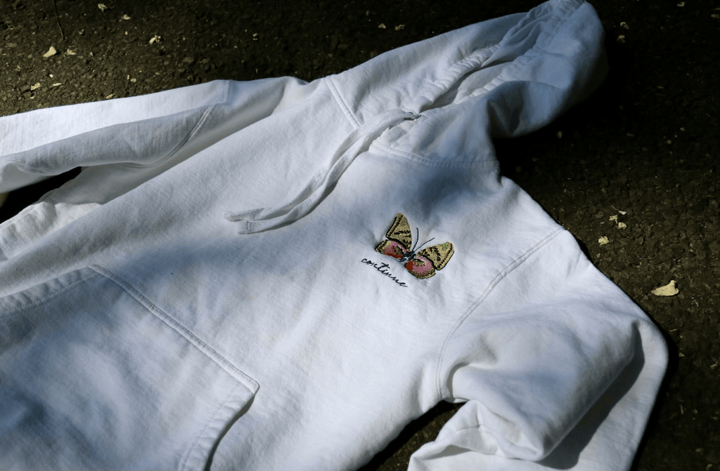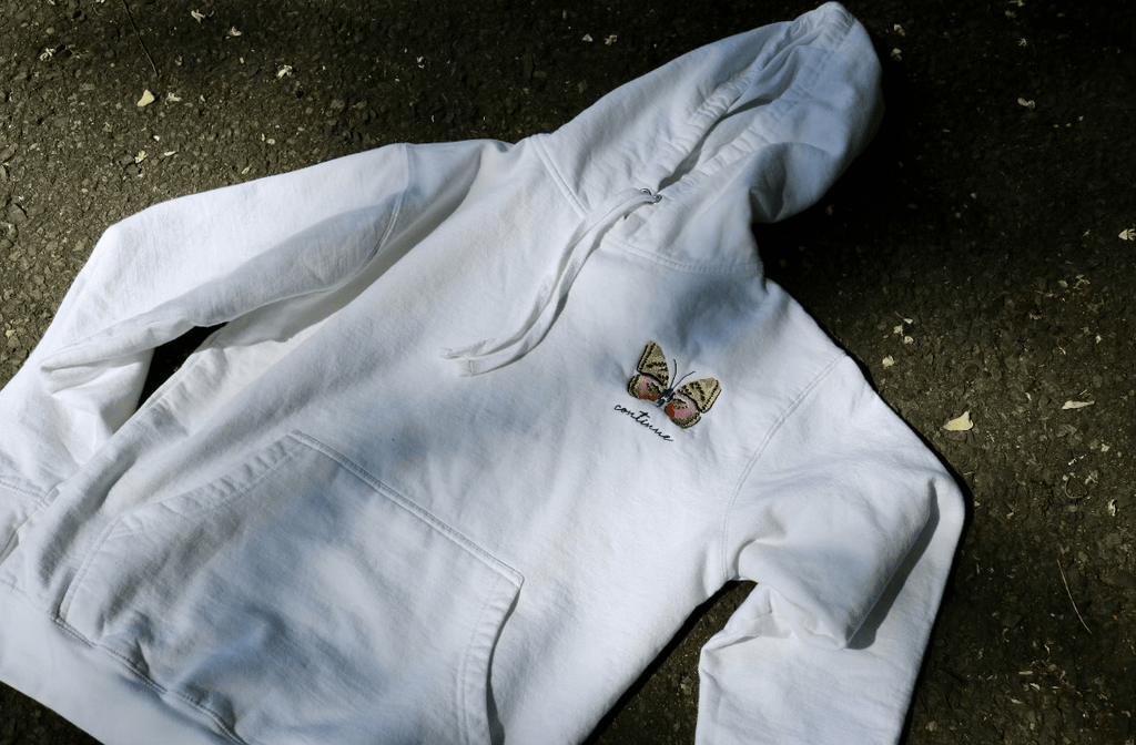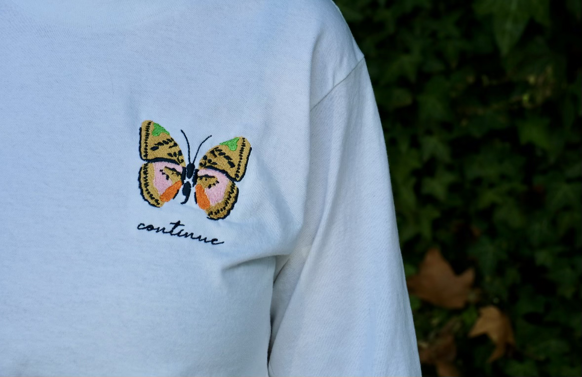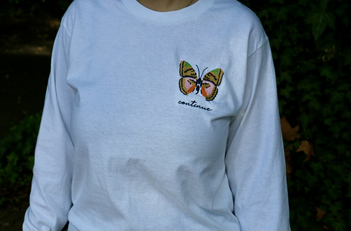 Each of these articles of clothing are designed with intention, featuring an embroidered front and a butterfly with mental health & suicide prevention resources printed on the back. By wearing it, you not only honor Kelly’s life but also help spread awareness in your own community.